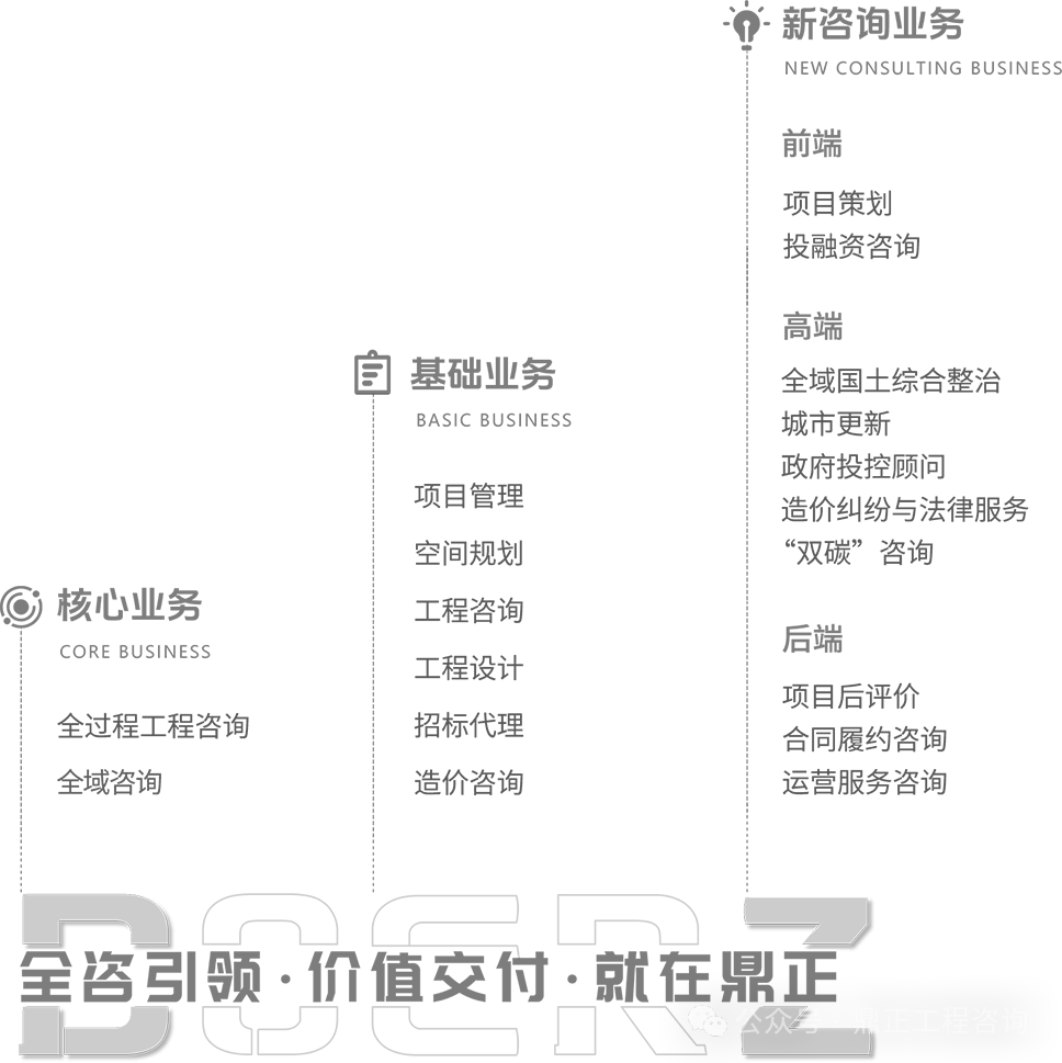 鼎正工程咨詢(xún)股份有限公司,是一家全牌照·高資信·全產(chǎn)業(yè)鏈的工程咨詢(xún)及設(shè)計(jì)一體化的綜合性咨詢(xún)企業(yè)。