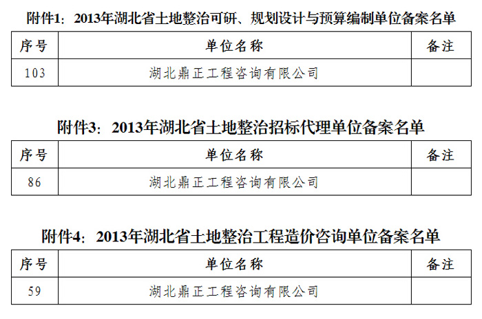 祝賀我司所有相關(guān)業(yè)務(wù)均通過湖北省國土資源廳2013土整從業(yè)機構(gòu)備案
