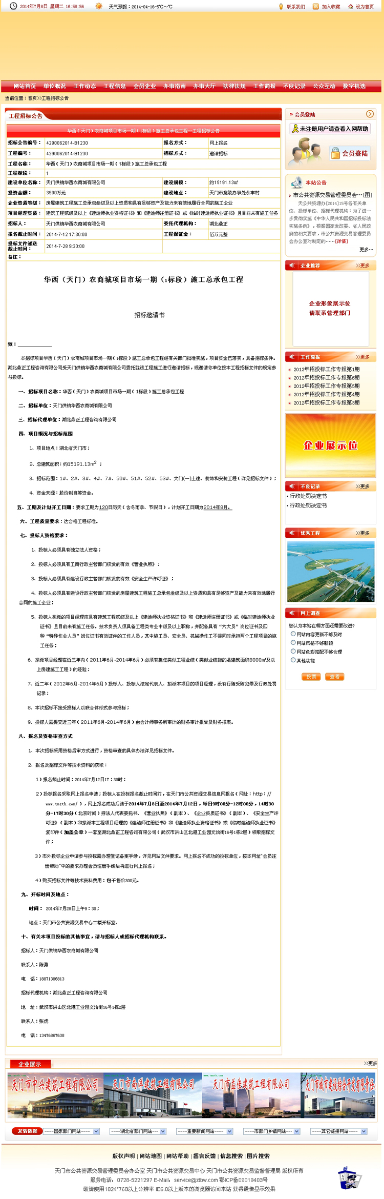 華西(天門)農(nóng)商城項(xiàng)目市場一期(1標(biāo)段)施工總承包工程