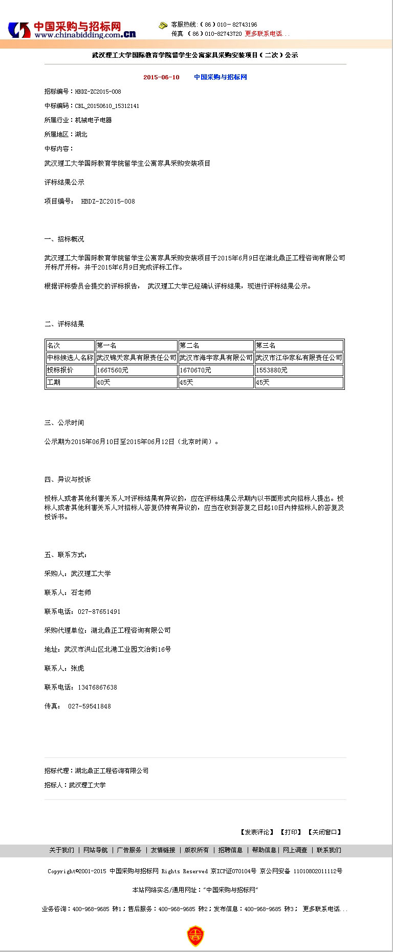 武漢理工大學(xué)國際教育學(xué)院留學(xué)生公寓家具采購安裝項(xiàng)目(二次)公示