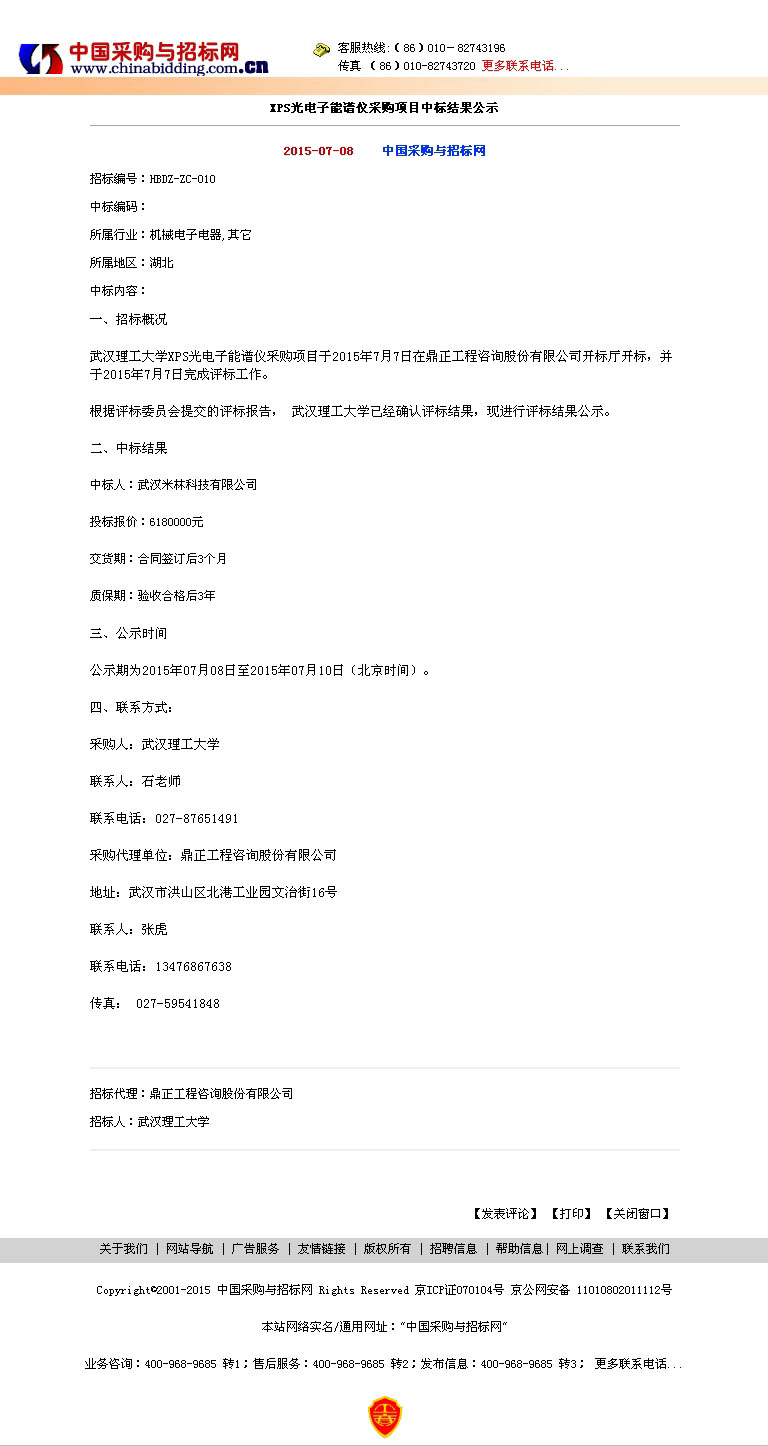 XPS光電子能譜儀采購項目中標(biāo)結(jié)果公示