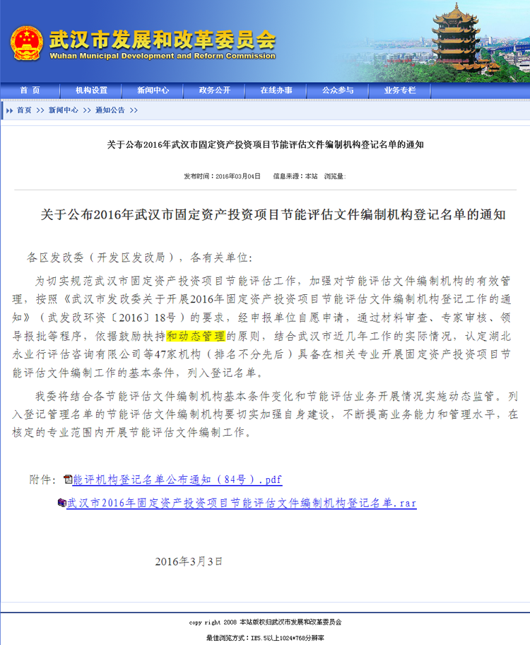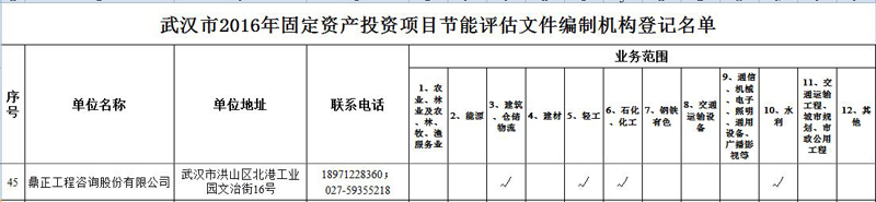 【經營成果】我司入選2016年武漢市固定資產投資項目節(jié)能評估文件編制機構登記名單