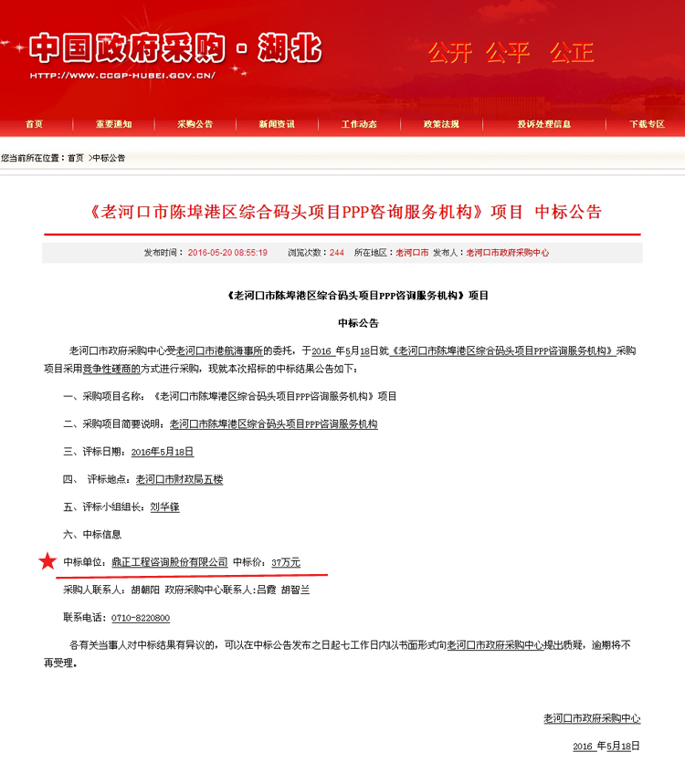 【經(jīng)營成果】我司中標(biāo)《老河口市陳埠港區(qū)綜合碼頭項目PPP咨詢服務(wù)機(jī)構(gòu)》項目