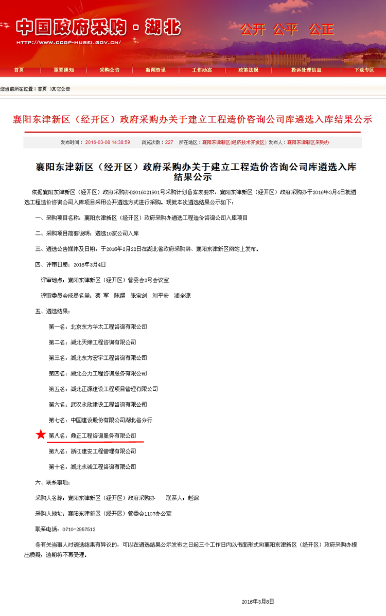 【經(jīng)營(yíng)成果】我司入圍襄陽(yáng)東津新區(qū)(經(jīng)開(kāi)區(qū))政府采購(gòu)辦工程造價(jià)咨詢公司庫(kù)