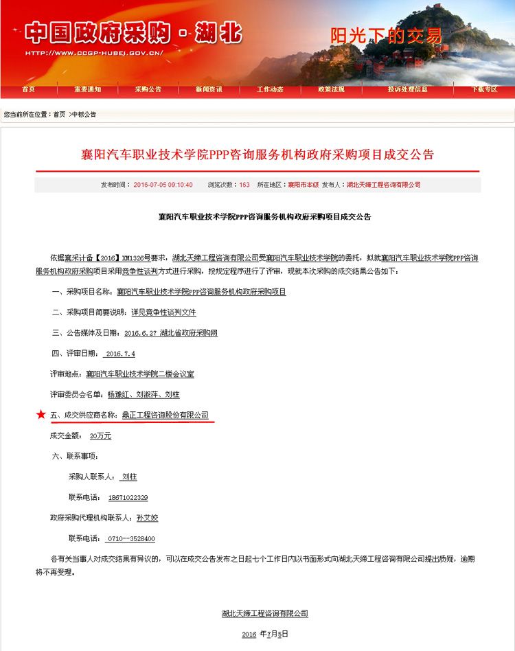 【經(jīng)營成果】我司中標(biāo)襄陽汽車職業(yè)技術(shù)學(xué)院PPP咨詢服務(wù)機(jī)構(gòu)政府采購項(xiàng)目