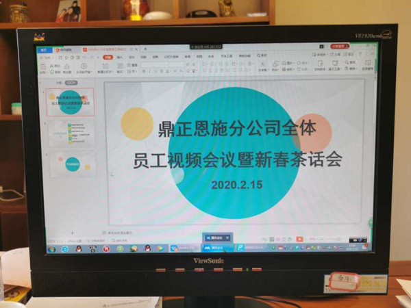 2020年2月15日下午三點(diǎn),受疫情的影響,鼎正恩施分公司通過視頻會(huì)議的形式,召開了全體員工視頻會(huì)議暨新春茶話會(huì),即使大家沒有以面對(duì)面的方式參與這次會(huì)議,但是也能夠通過網(wǎng)絡(luò)與大家零距離地分享自己在這個(gè)特殊春節(jié)的所見所聞與個(gè)人經(jīng)歷。