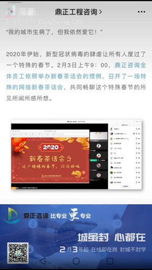 因疫情防控的需要,很多行業(yè)不得不延遲復(fù)工,建設(shè)行業(yè)亦是如此。為有效應(yīng)對(duì)這次疫情,將其影響降到最低,鼎正工程咨詢股份有限公司領(lǐng)導(dǎo)層快速反應(yīng),制定了一系列緊急預(yù)案,采取應(yīng)對(duì)疫情的各項(xiàng)措施,并開(kāi)展遠(yuǎn)程辦公和線上培訓(xùn)學(xué)習(xí)。