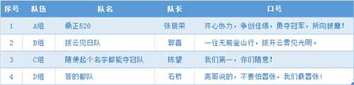 公司總部全員及分公司部分代表,共分為4個隊伍參賽。為保證全員參與且不受題目限制,全體員工跨部門分組,每組成員均由業(yè)務部門及非業(yè)務部門人員組成,最終分為A、B、C、D四組。