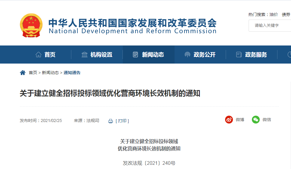 關(guān)于建立健全招標(biāo)投標(biāo)領(lǐng)域優(yōu)化營商環(huán)境長效機(jī)制的通知