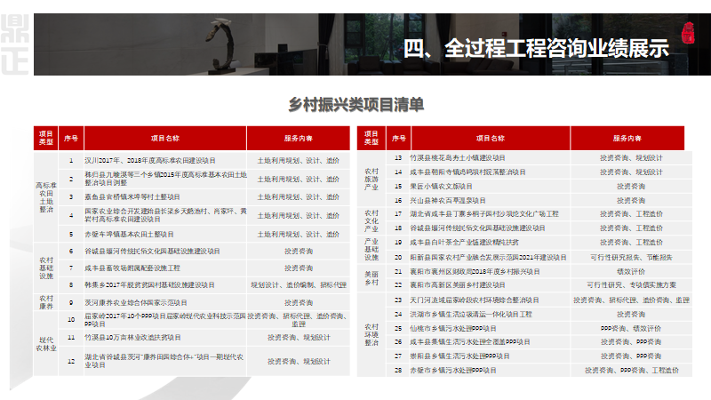 鼎正始終踐行“以全過程工程咨詢及PPP全生命周期咨詢服務為先導、以投資管控為主線、以項目增值為目標”的一站式工程咨詢服務理念,積極探索參與鄉(xiāng)村振興的領域與路徑,緊跟鄉(xiāng)村振興新動向,充分發(fā)揮工程咨詢企業(yè)高智力支撐作用,干出工程咨詢新作為!