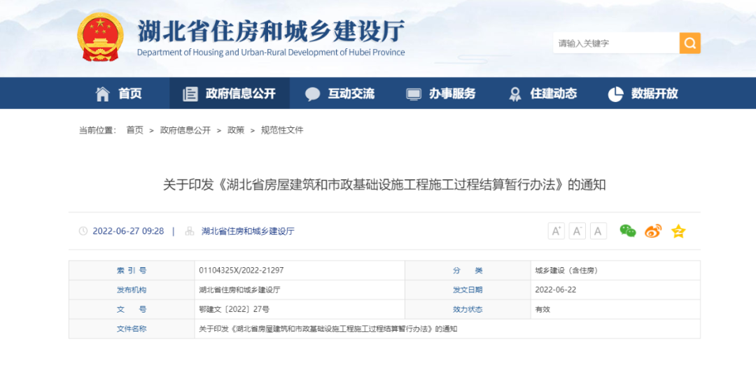 近日,湖北省住建廳聯(lián)合湖北省財(cái)政廳、湖北省公共資源交易監(jiān)督管理局印發(fā)了《湖北省房屋建筑和市政基礎(chǔ)設(shè)施工程施工過程結(jié)算暫行辦法》(以下簡(jiǎn)稱《暫行辦法》),截至目前,全國(guó)已有近30省市區(qū)發(fā)文明確施工過程結(jié)算。