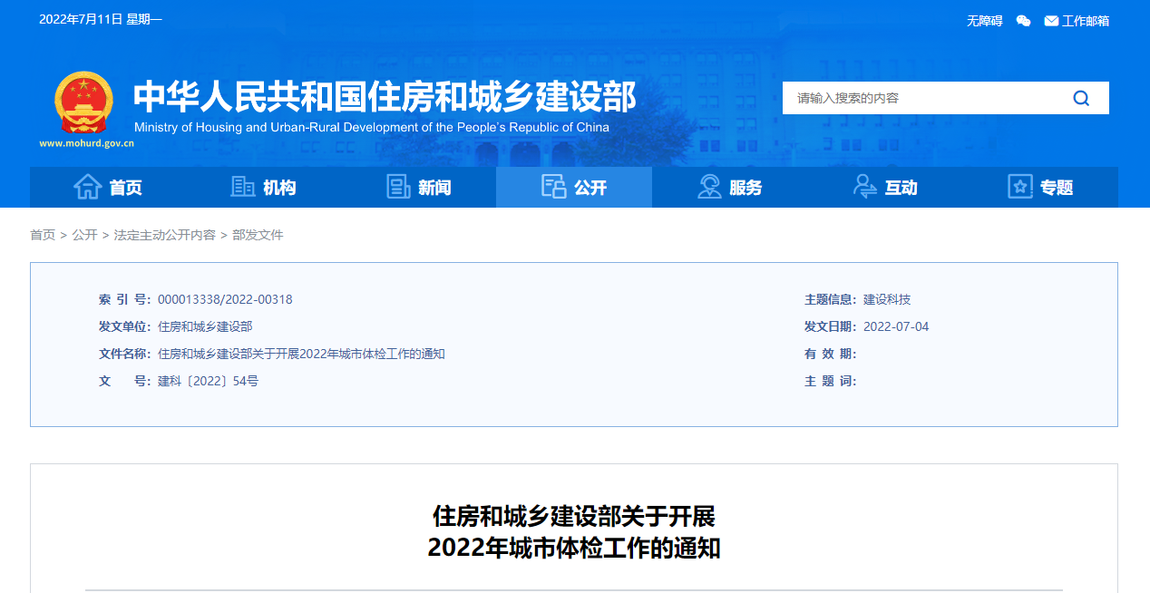 住房和城鄉(xiāng)建設(shè)部關(guān)于開展2022年城市體檢工作的通知