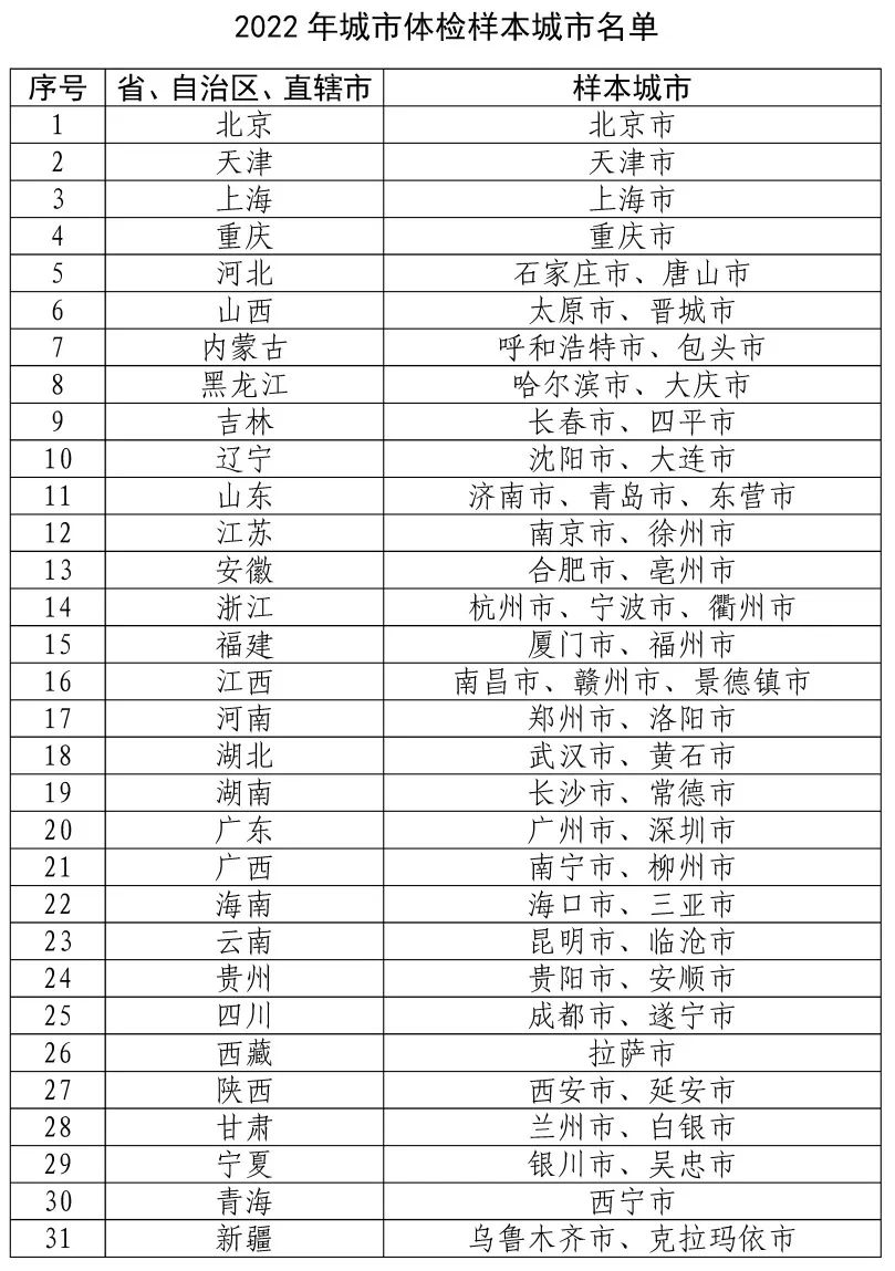 1.2022年城市體檢樣本城市名單