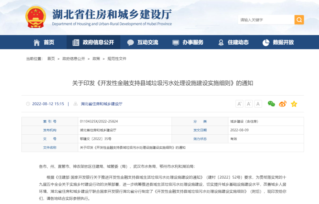 根據(jù)《住建部 國(guó)家開(kāi)發(fā)銀行關(guān)于推進(jìn)開(kāi)發(fā)性金融支持縣域生活垃圾污水處理設(shè)施建設(shè)的通知》(建村〔2022〕52號(hào))要求,為貫徹落實(shí)黨的十九屆五中全會(huì)關(guān)于實(shí)施鄉(xiāng)村建設(shè)行動(dòng)的決策部署,進(jìn)一步統(tǒng)籌推進(jìn)縣域生活垃圾污水處理設(shè)施建設(shè),切實(shí)提升城鄉(xiāng)基礎(chǔ)設(shè)施建設(shè)水平,改善城鄉(xiāng)人居環(huán)境,湖北省住房和城鄉(xiāng)建設(shè)廳聯(lián)合國(guó)家開(kāi)發(fā)銀行湖北省分行制定了《開(kāi)發(fā)性金融支持縣域垃圾污水處理設(shè)施建設(shè)實(shí)施細(xì)則》(附后),現(xiàn)印發(fā)給你們,請(qǐng)各地結(jié)合實(shí)際參照?qǐng)?zhí)行。