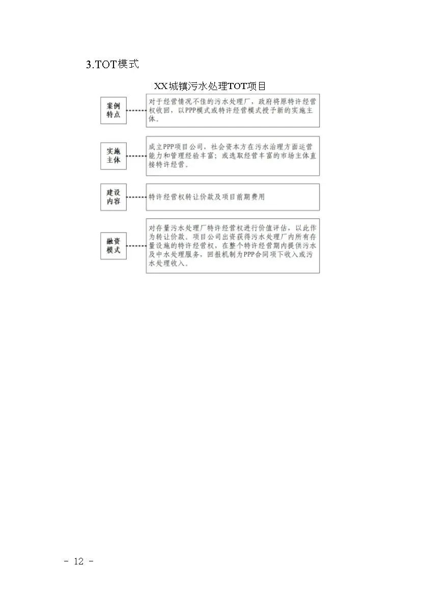 可采用政府將低效運(yùn)營(yíng)的存量垃圾污水處理設(shè)施的特許經(jīng)營(yíng)權(quán)先行收回,再通過(guò)實(shí)施模式(TOT模式)授予新實(shí)施主體特許經(jīng)營(yíng)權(quán),既可避免資產(chǎn)轉(zhuǎn)讓產(chǎn)生高額稅費(fèi),又可不受并購(gòu)類貸款相關(guān)限制。