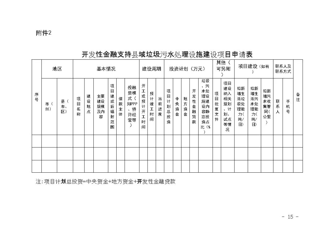 2.開(kāi)發(fā)性金融支持縣域垃圾污水處理設(shè)施建設(shè)項(xiàng)目申請(qǐng)表