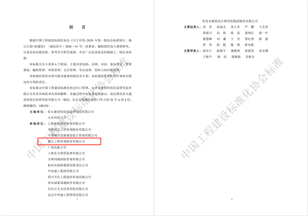作為一家研究型企業(yè),“守正創(chuàng)新”是刻在鼎正人骨子里的DNA,我們先后參與已立項和發(fā)布的有《建設項目過程結算管理標準》、《設計施工總承包工程計價規(guī)程》、《湖北省房屋市政工程造價數(shù)據采集規(guī)范》、《全過程工程咨詢實施導則》、《工程造價咨詢作業(yè)手冊》等多項行業(yè)規(guī)范、標準的編制,持續(xù)為行業(yè)發(fā)展獻策獻智。