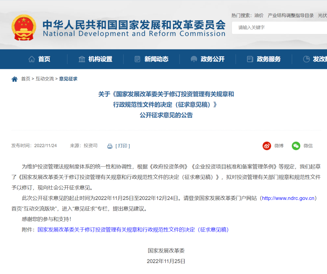 國家發(fā)展改革委關(guān)于修訂投資管理有關(guān)規(guī)章和行政規(guī)范性文件的決定