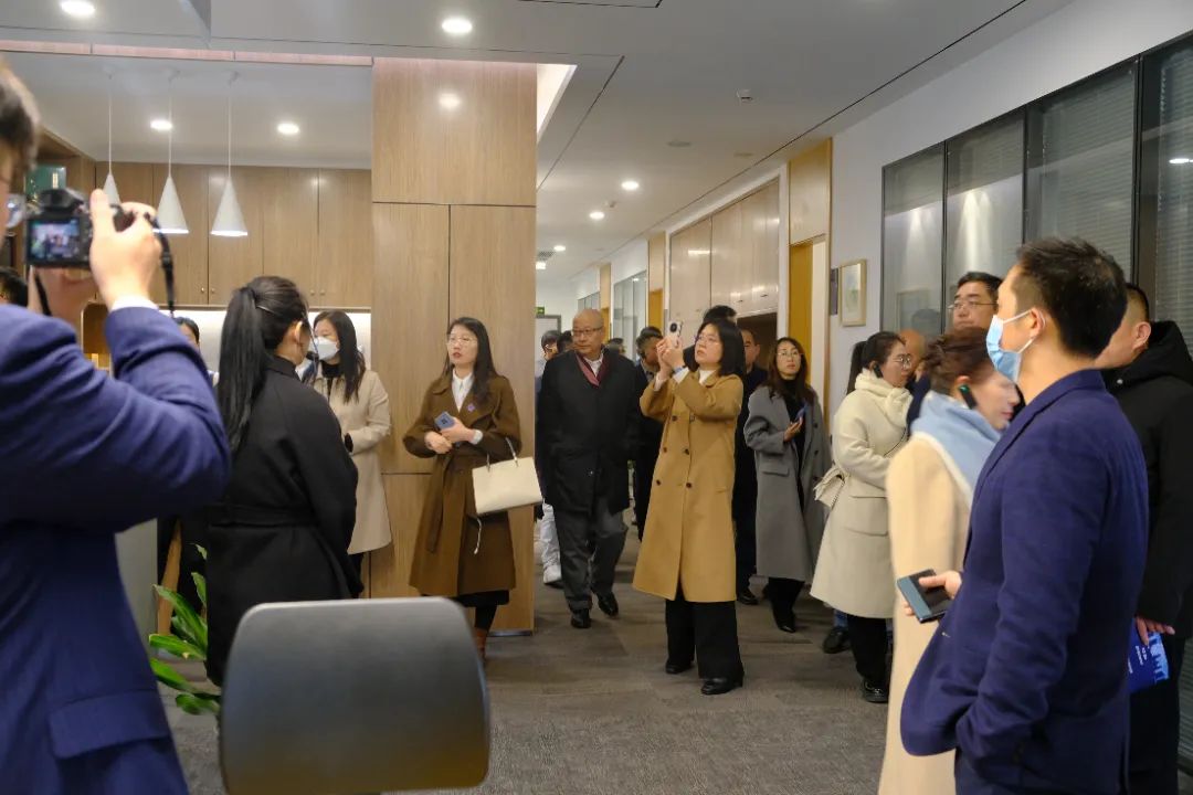 王董陪同尹教授一行參觀了鼎正第一辦公空間、第二辦公空間,并詳細(xì)介紹了鼎正的企業(yè)文化、發(fā)展戰(zhàn)略、業(yè)務(wù)模塊,與會(huì)代表對(duì)鼎正“顏值”連連稱贊道“這里辦公氛圍太舒服了”!