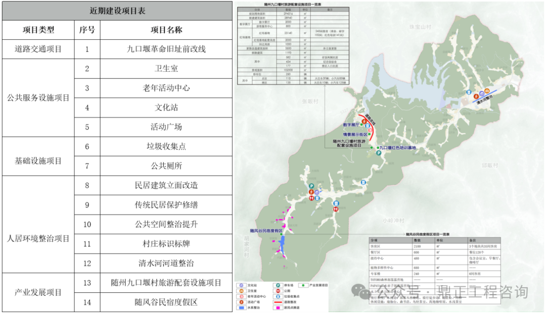 如九口堰村近期主要建設(shè)內(nèi)容為基礎(chǔ)設(shè)施與公共服務(wù)設(shè)施完善、人居環(huán)境整治,以及部分池塘整治和產(chǎn)業(yè)發(fā)展項(xiàng)目。