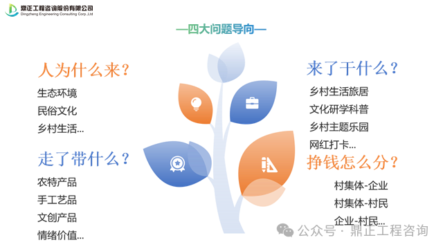 圍繞人為什么來(lái)、來(lái)了干什么、走了帶什么、掙錢(qián)怎么分四大問(wèn)題去思考鄉(xiāng)村該怎么運(yùn)營(yíng),去明確鄉(xiāng)村的主題定位、發(fā)展方向、核心產(chǎn)品、運(yùn)營(yíng)方式,更好地推進(jìn)鄉(xiāng)村運(yùn)營(yíng)。