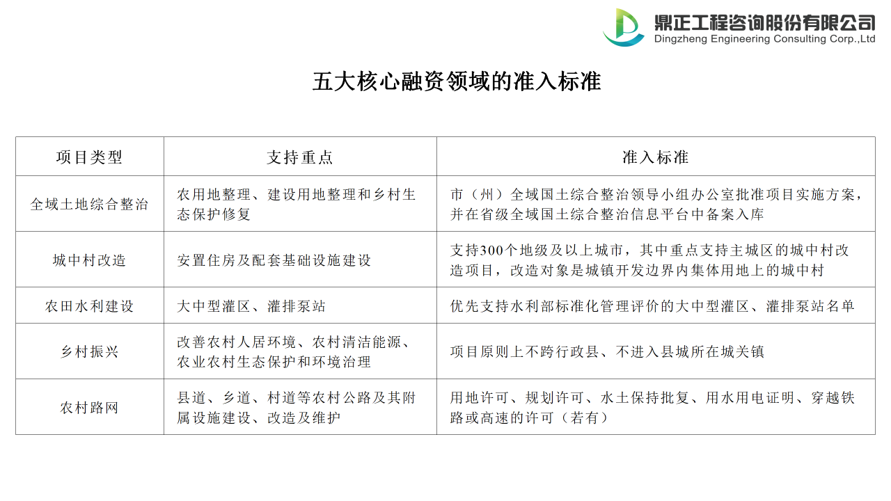 1.五大核心融資領(lǐng)域的準入標(biāo)準