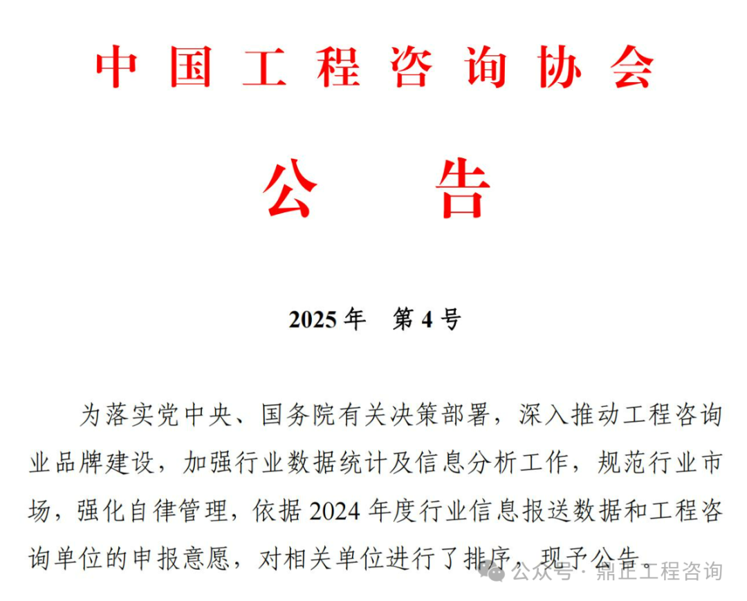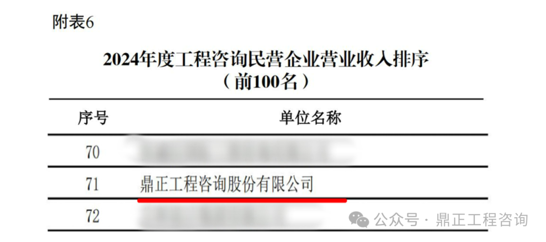 為進(jìn)一步推動(dòng)工程咨詢行業(yè)品牌建設(shè),規(guī)范行業(yè)行為、提高自律管理,8月21日,中國工程咨詢協(xié)會(huì)在官網(wǎng)發(fā)布了關(guān)于2024年度工程咨詢單位排序的公告。鼎正憑借穩(wěn)健的經(jīng)營實(shí)力和綜合表現(xiàn),同時(shí)榮登兩項(xiàng)百強(qiáng)榜單,位列“2024工程咨詢單位營業(yè)收入中型企業(yè)100強(qiáng)”第57位,以及“2024工程咨詢單位民營企業(yè)營業(yè)收入100強(qiáng)”第71位!