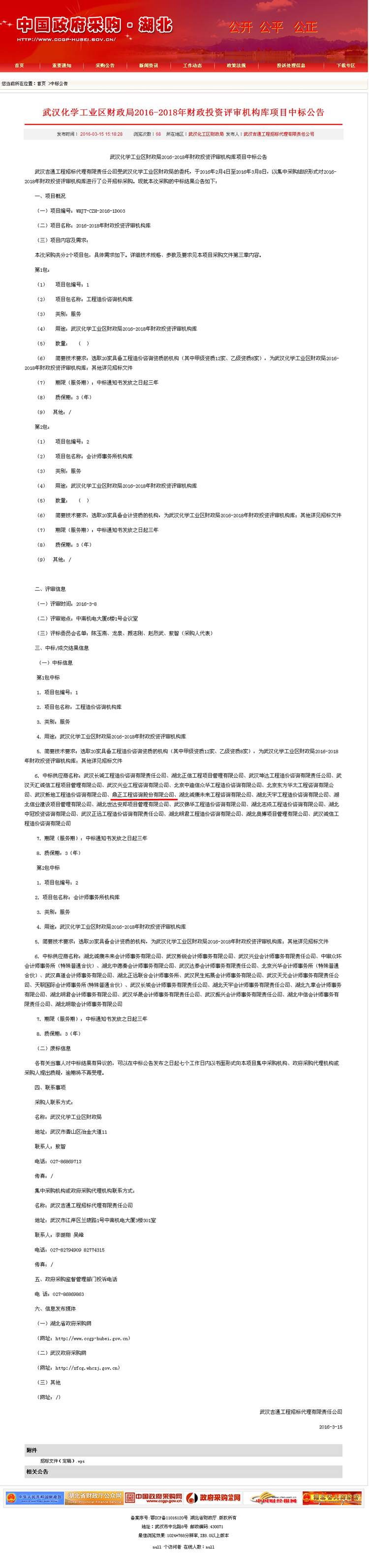 【經(jīng)營(yíng)成果】我司入圍武漢化學(xué)工業(yè)區(qū)財(cái)政局2016-2018年財(cái)政投資評(píng)審機(jī)構(gòu)庫(kù)