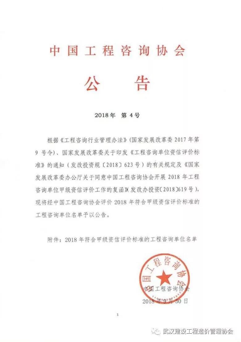 2018年9月19日,中國建設(shè)工程造價管理協(xié)會發(fā)布了“2018年度全國工程造價咨詢企業(yè)信用評價結(jié)果”,此次湖北省僅有22家工程造價咨詢單位獲得AAA信用評級,我司從全國眾多參評單位中脫穎而出,獲此榮譽。